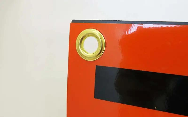 全面マグネット接着式で、四隅にハトメがついており、吊り下げも可能です。