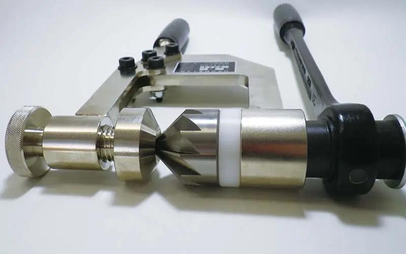 面取りフライスは堅牢に出来ているので、わずか数回の回転で面取り作業が完了します。22~32mmの各種レール継目穴に使用可能です。